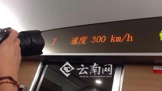 在一声长鸣的笛声中,云南高铁列车终于出发了。列车驶出站台,车厢里一下明亮起来,车窗外的景物飞快后退,高铁列车正在加速。速度在增加,但是车身非常稳,也没有摇晃和推背感。三分钟左右,车厢内显示速度已达到230km/h,并且在继续加速中。